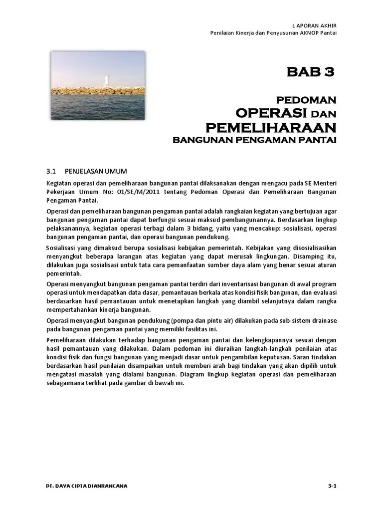 Contoh Laporan Aknop Pantai / Penyusunan Audit Teknis Aknop Danau Embung Di Kab Minahasa Kab / Audit teknis dan penyusunan aknop op bendung ws serbog.