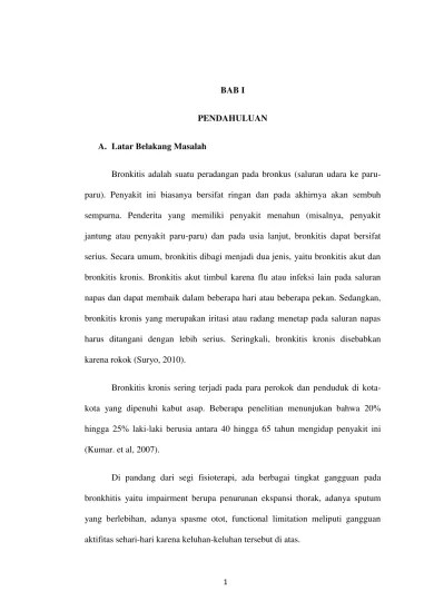 Bronkitis adalah suatu penyakit yang ditandai adanya dilatasi (ektasis) bronkus lokal Infeksi saluran pernafasan akut dibedakan menjadi 2, yaitu infeksi saluran pernafasan atas (ispa) dan . Invasi bakteri ke bronkus dapat merupakan infeksi sekunder setelah terjadi kerusakan permukaan mukosa oleh infeksi virus sebelumnya. "m" dengan bronkhitis di puskesmas . Tujuan makalah untuk memenuhi tugas keperawatan medikal bedah 1.