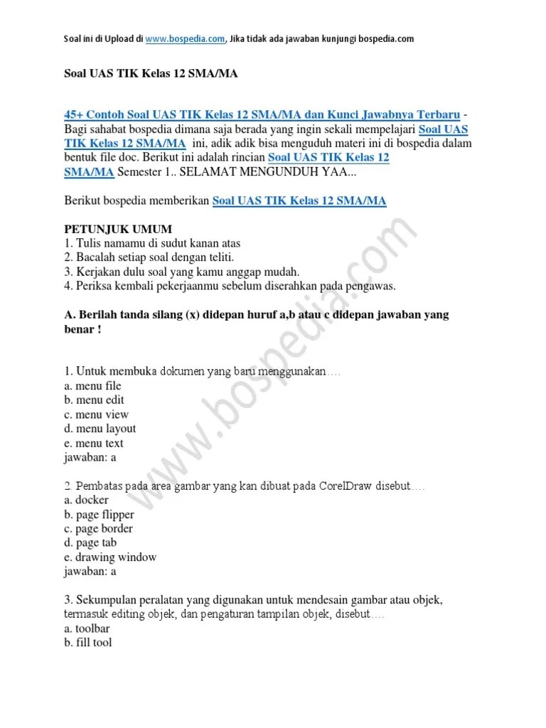 25.02.2016 · contoh soal tik kelas x untuk sma dan kunci jawabannya berikut ini, sebenarnya hampir mirip dengan soal tik kelas 7 untuk smp semester 1.